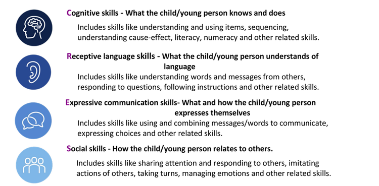We get to know each child/young person’s range of skills across 4 domains by answering questions about each learner. CRES means: