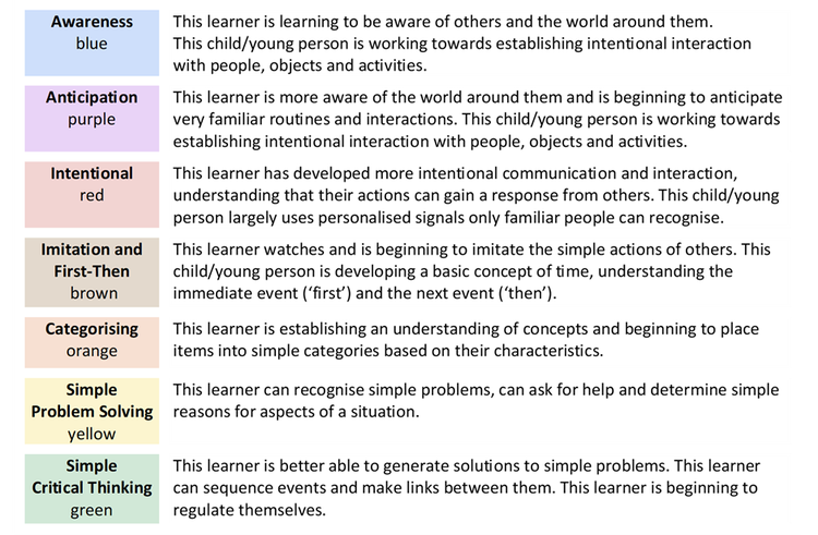 We get to know each child/young person’s range of skills across 4 domains AND 7 sequential Passport groups.